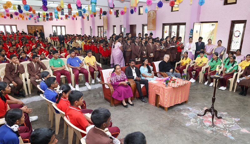 To improve language proficiency, students are encouraged to speak only in English while on the school premises. This practice helps to enhance their communication skills and prepares them for a globalized world.